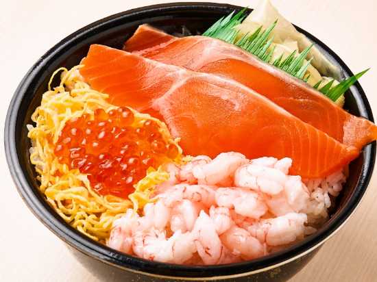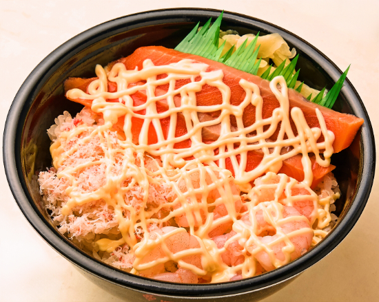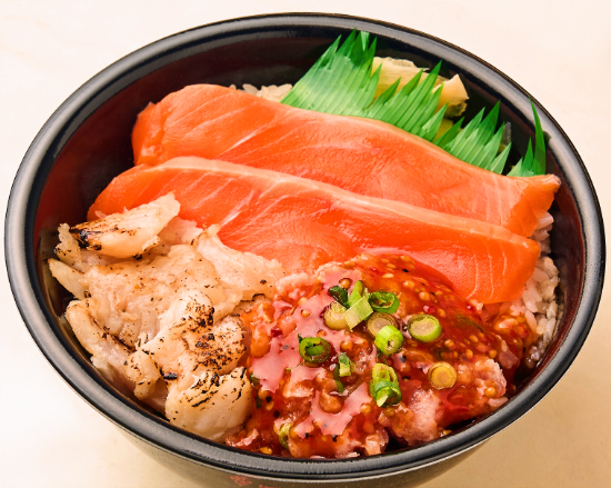 98 漬けサーモン漬けまぐろ炙りアブラカレイ丼