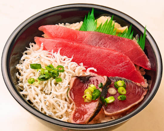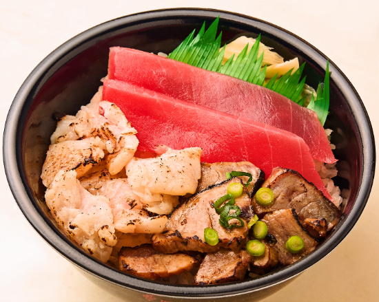 102 まぐろ炙り漬けカツオ炙りアブラカレイ丼